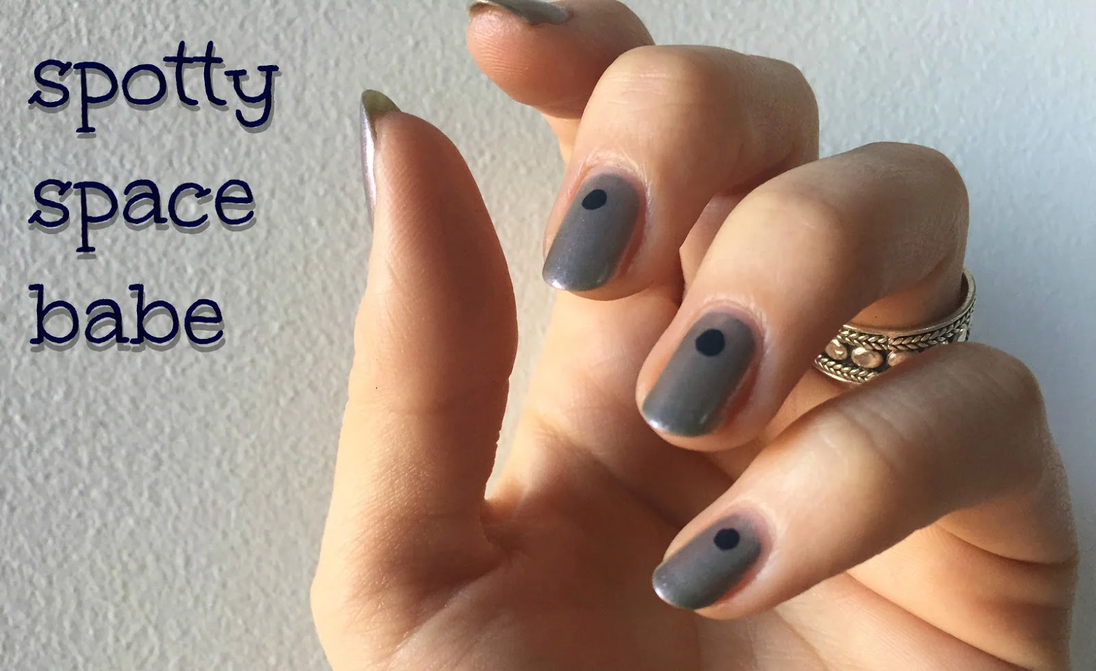 I'm having a really hard time doing just basic manicures now! I can't just leave my nails one, solid color. However, it would seem I'm currently feeling like back-tracking a bit, and toning the designs down. I spotted a cute little mani on Pinterest and wanted to recreate it in my own way. I like the sort of space-babe feeling of this look!