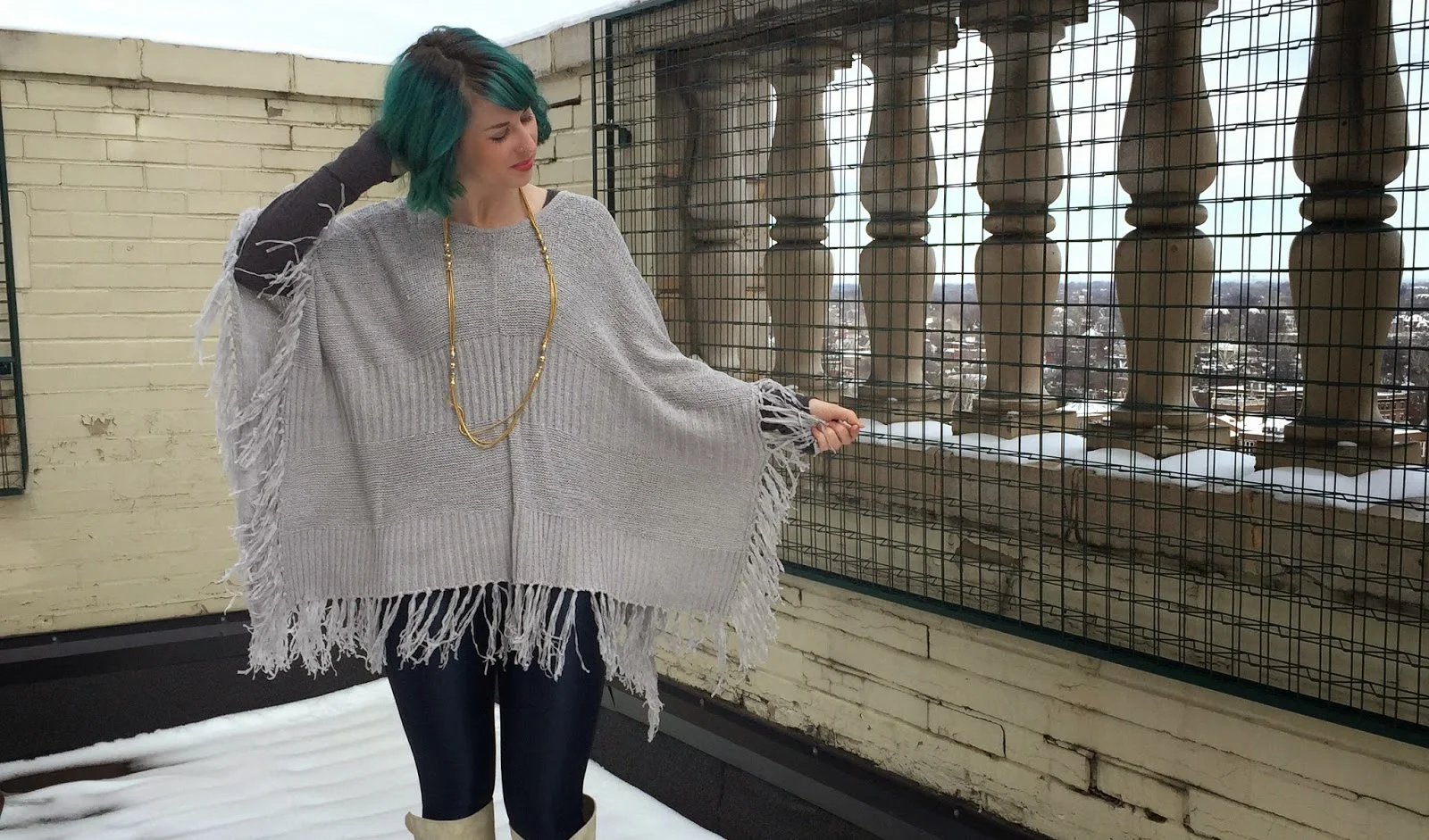 Poncho: Kat's Closet, at the Cash + Carry event (similar) | Disco Pants: American Apparel
