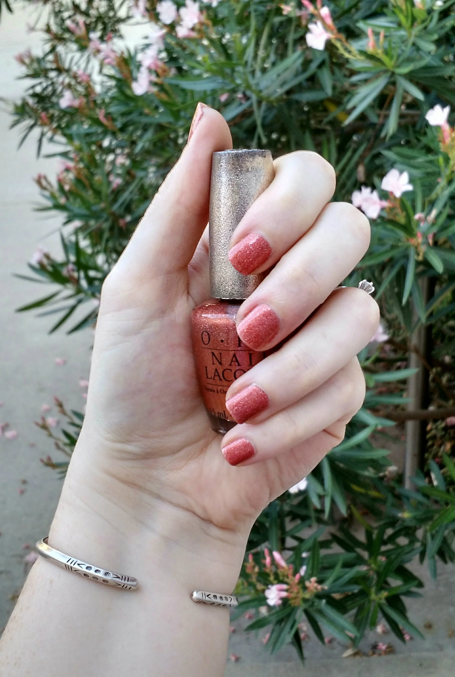 Durability: OPI is always a go-to brand for durability. Manicurists everywhere stock their shelves with OPI because they know that even with a basic mani, their customers won't be coming back in two days complaining about chips. That being said, it still definitely needs one if not two top coats to last through the whole week looking divine. 9/10.