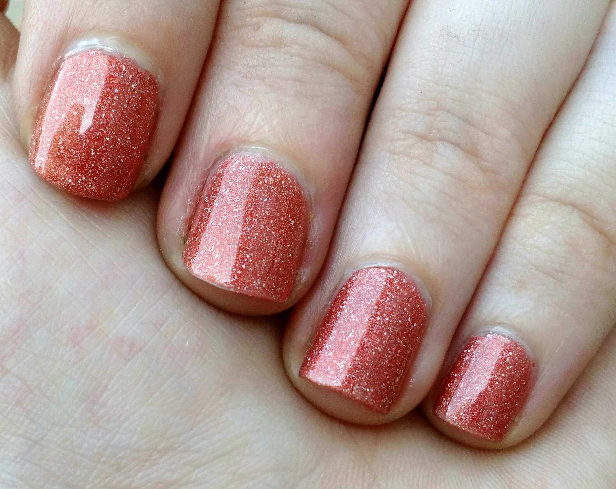 Color Appeal: This particular color is pretty unique. I would say that you definitely need to be feeling the autumn vibe if you're going to rock a burnt orange on your nails, but that being said, if you're in the mood for it, it won't let you down. And the sparkles are really, really sparkly! 8/10