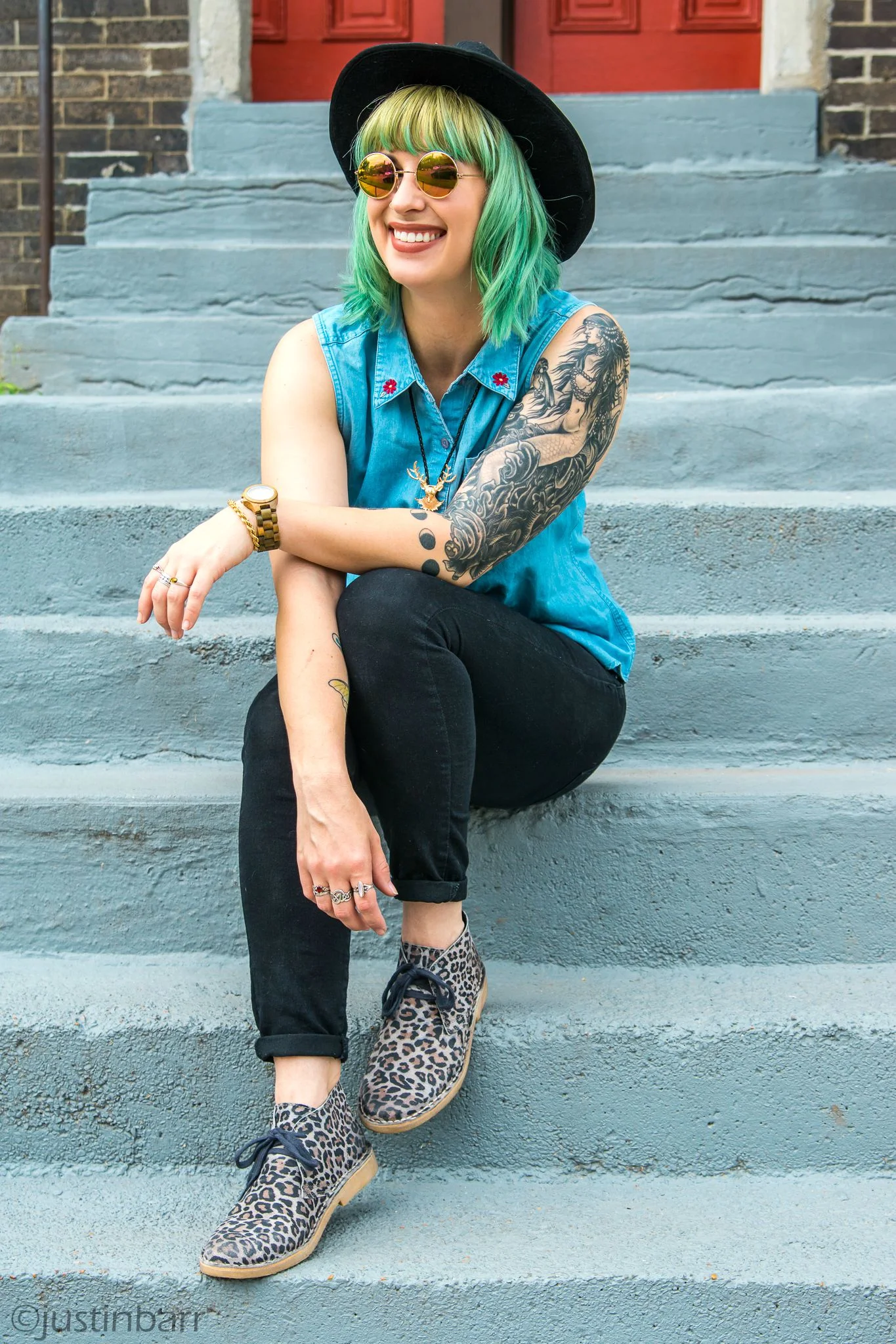 I recently was invited to check out the locally-based Bronx Diba Shoe Outlet by fellow blogger Carmen of The Ruby Zipper. Not only the sweetest lady on the planet, I feel like she and I have a similar style sense - as in, we kinda just wear whatever we want and don't really pay too much attention to "rules" or fads. So when she asked if I'd like to visit the outlet, I said heck yes! The shop has a massive sale in July to help clear its inventory. Many women's styles qualify for a whopping 5 for $100. I spent a little too long browsing the selection, pouring over all the options. I have been focusing on adding more wearable yet fab shoes to my closet, and these amazing leather chukkas jumped right out at me.