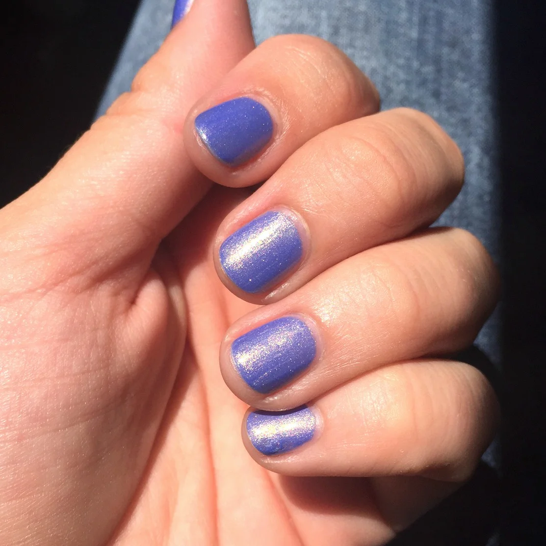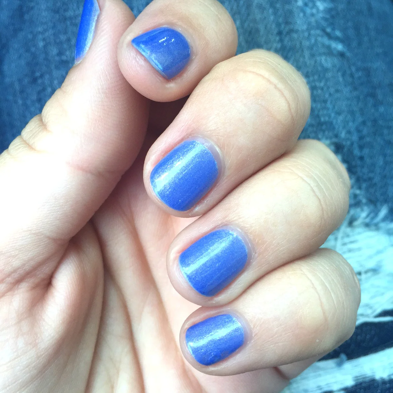 I remember once reading a blog post featuring a color that walks the line between blue and purple, and the author called it "blurple." I think this shade qualifies. The pearl shimmer gives it depth, and keeps it from falling too matte. Because "Kommotion" is a softer color, I bet it would look great on long nails, too!